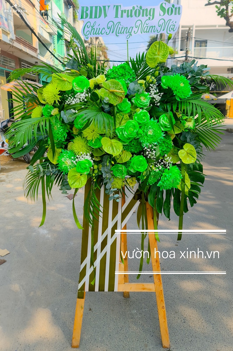 Xanh là 1 trong hai màu cơ bản rất được ưa dùng khi bài trí theo phong thủy, tượng trưng cho năng lượng xanh tươi mới..... Vườn Hoa Xinh luôn được quý khách hàng, đặc biệt là các doanh nghiệp tin yêu và đặt thiết kế hoa chúc mừng phục vụ các dịp khai trương, khánh thành