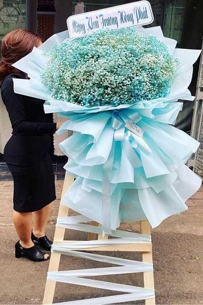 Kệ chúc mừng Hoa Baby Xanh Vĩnh Cửu - KH1136 gồm các loại hoa tươi: