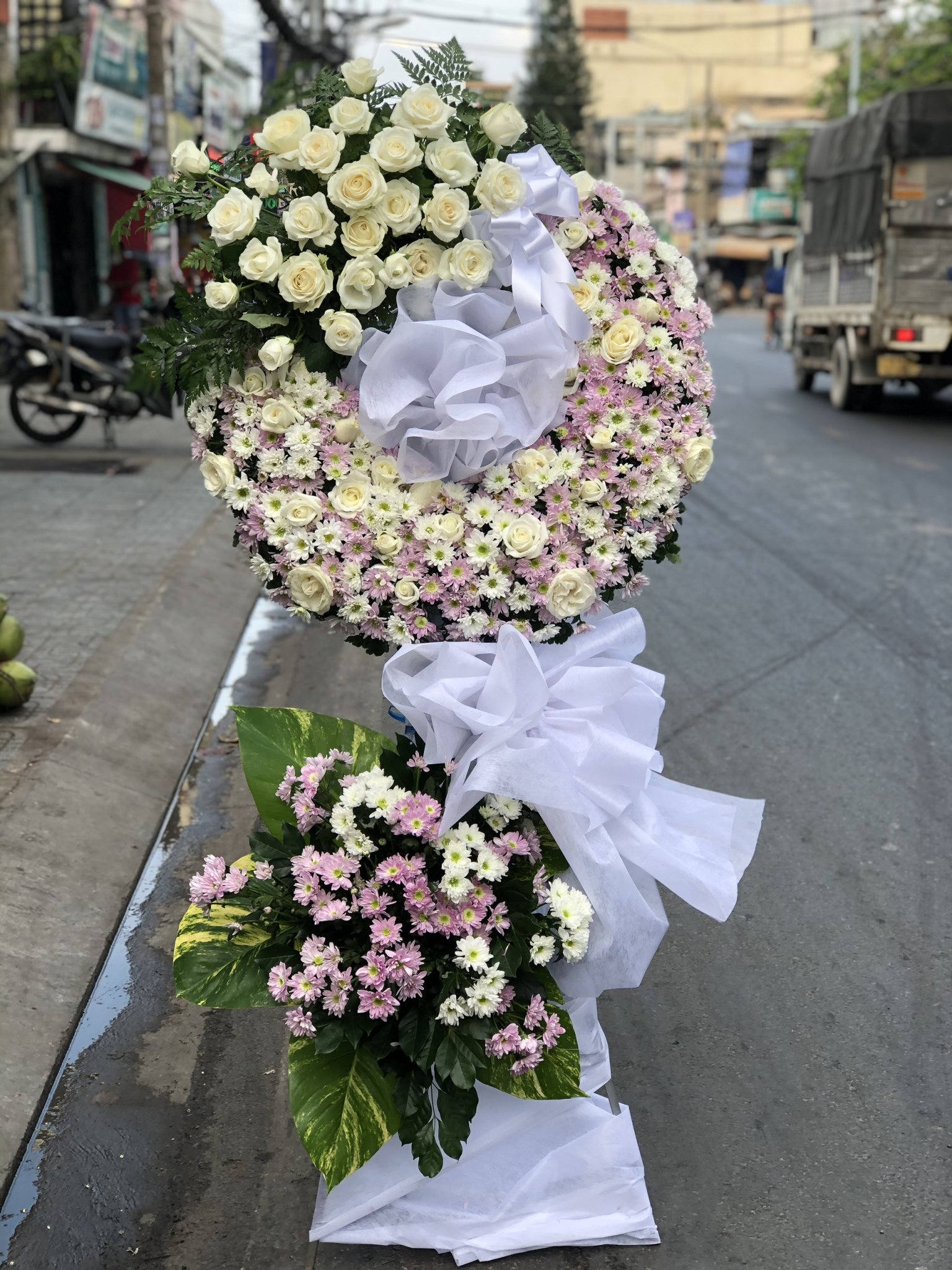 Mẫu vòng hoa "Hoa Chia Buồn 10 - VH1077" bao gồm: