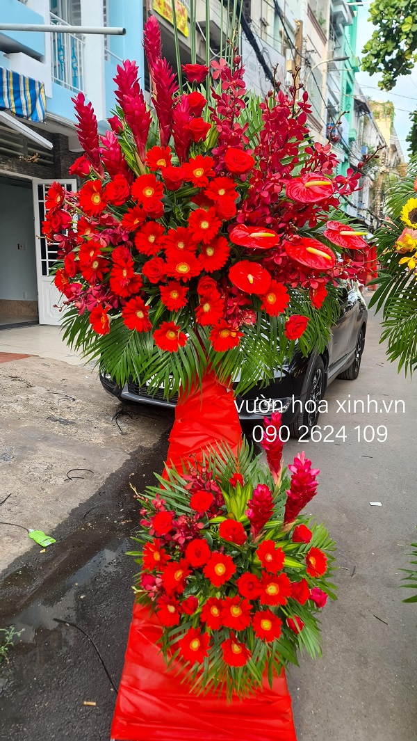 Kệ hoa khai trương, chúc mừng tông đỏ rực rỡ, may mắn
