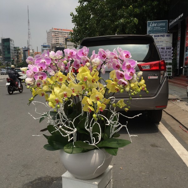 Hoa Lan Hồ Điệp Chậu 15 Cây mix Hồng & Vàng - LHD1043 Gồm: 8 cây lan hồ điệp màu hồng và 7 cây lan hồ điệp màu vàng, 1 chậu sứ cao cấp và các phụ kiện trang trí. Vườn Hoa Xinh là một đơn vị đại lý cung cấp mua bán hoa lan hồ điệp đẹp chất lượng, mang tới cho bạn phương pháp chơi lan tốt nhất và chúng cũng là những món quà tuyệt đẹp phù hợp để tặng người thân bạn bè mang nhiều ý nghĩa.