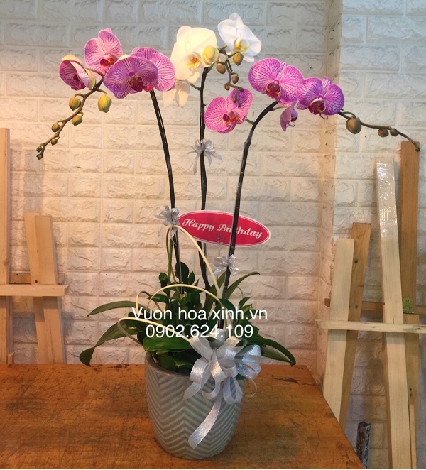 Hoa Lan Hồ Điệp Chậu 3 Cây - LHD1040, Chúng mang trong mình những ý nghĩa thông điệp yêu thương, Một chậu lan hồ điệp phù hợp với những dịp sự kiện, tặng sinh nhật bố mẹ, còn có thể trang trí lan hồ điệp tại văn phòng, với các màu sắc nổi bật các bạn hãy đến CTY Vườn Hoa Xinh với hàng nghàn mẫu cho bạn lựa chọn có thể tự tay chọn lựa và với sự tư vấn chuyên nghiệp của chúng tôi đảm bảo bạn sẽ chọn được một chậu lan hồ điệp ưng ý.