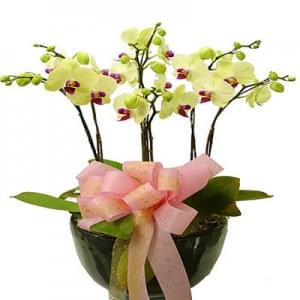 Mẫu hoa bao gồm 5 cành hồ điệp vàng. Mẫu hoa bền và đẹp trong 30 ngày