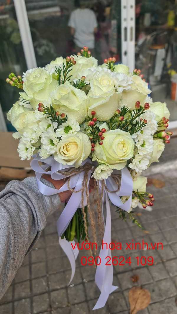 Hoa cầm tay cho cô dâu mặc áo dài dịu dàng và thướt tha - Vuonhoaxinh.vn