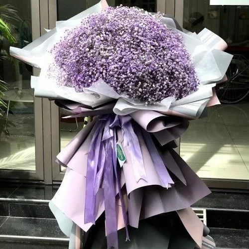 - Chọn mẫu bó hoa Baby tím khổng lồ có một ưu điểm: Hoa tươi rất lâu. Hoa tươi để làm hoa khô vĩnh cửu. Hoa có trọng lượng rất nhẹ mặc dù bỏ siêu to khủng.