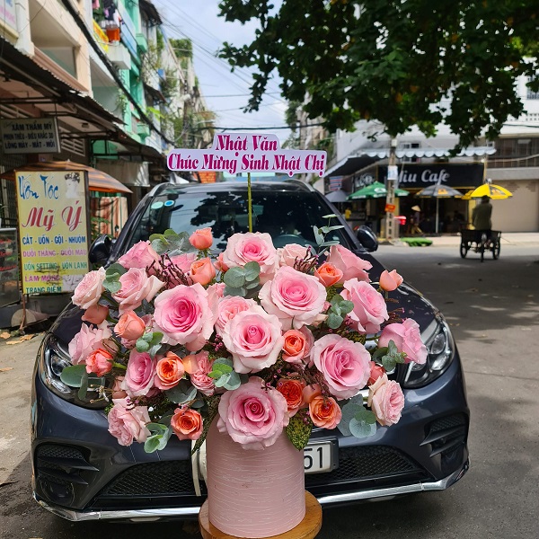 Lẵng hoa chúc mừng sinh nhật kết hợp bỏi những đóa hoa hồng đẹp nhất tạo nên một lẵng hoa độc đáo dành để gởi những lời chúc mừng đến người thân