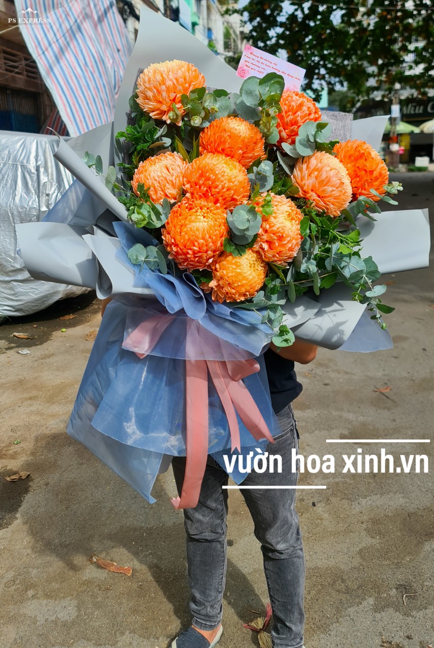 - 10 cành cúc mẫu đơn Hà Lan màu cam nhập khẩu