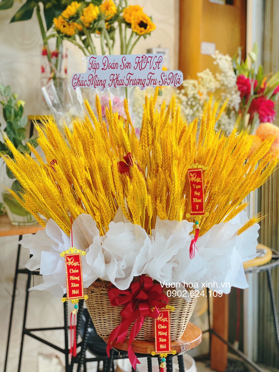 Trao nhau sắc vàng đón xuân với 1 giỏ hoa lúa mạch thịnh vượng, sung túc.