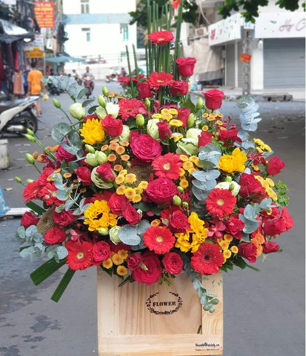Lẵng hoa chúc mừng sinh nhật kết hợp bỏi những đóa hoa hồng đẹp nhất tạo nên một lẵng hoa độc đáo dành để gởi những lời chúc mừng đến người thân