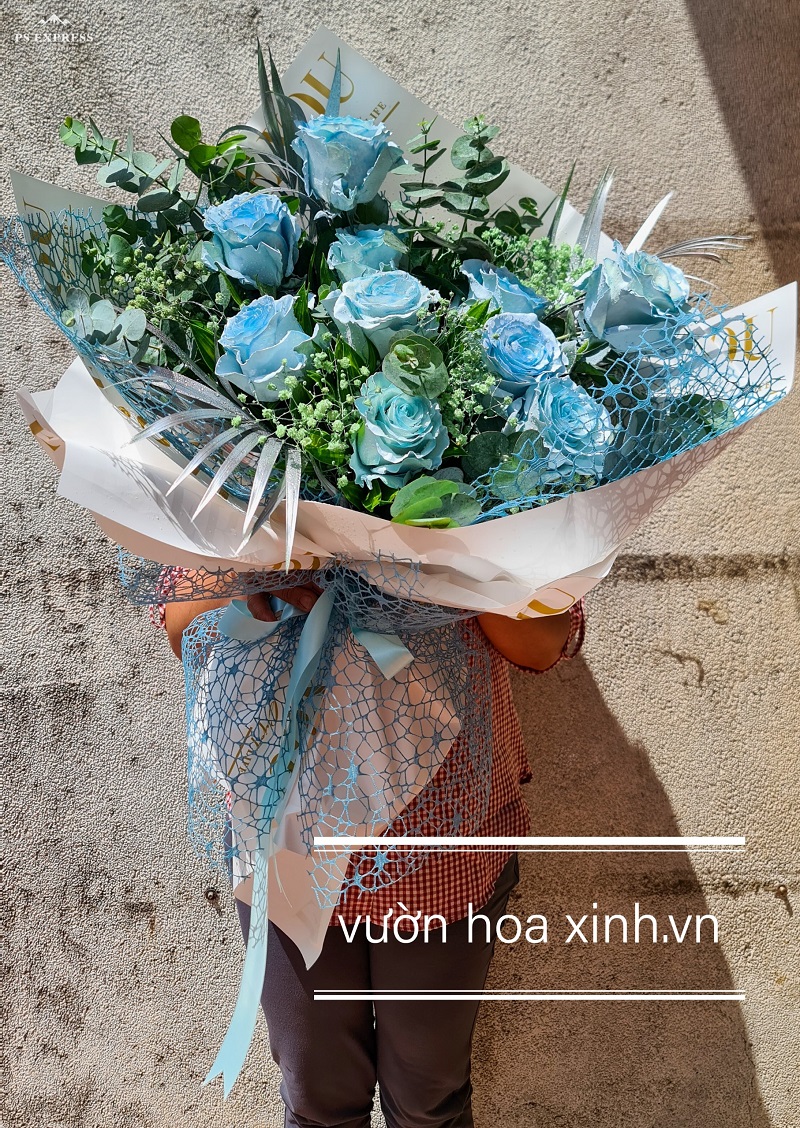 Bó hoa gồm chủ yếu là hoa hồng Ecuador nhập khẩu, nhuộm màu Sky Blue siêu đẹp độc đáo. Bó hoa này thích hợp dành tặng cho các fan của hoa hồng nhưng yêu thích sự mới lạ và độc đáo