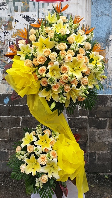 Ngày khai trương là ngày vui khi có một bước tiến mới trong sự nghiệp. Với mong muốn họ có tương lai rực rỡ khi bước tiếp trên quãng đường mới. Tương lai sự nghiệp trước sau đắp bồi xin chúc gia đình ban tôi. Kệ hoa chúc mừng này sẽ là lời chúc tuyệt vời nhất gửi đến họ trong ngày vui này.Thích hợp tặng dịp khai trương, kỷ niệm thành lập