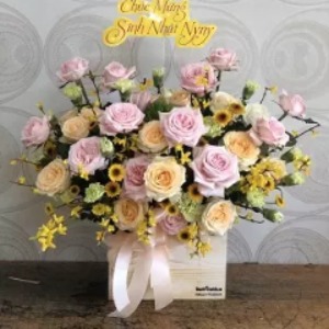 Lẵng hoa chúc mừng sinh nhật kết hợp bỏi những đóa hoa hồng đẹp nhất tạo nên một lẵng hoa độc đáo dành để gởi những lời chúc mừng đến người thân