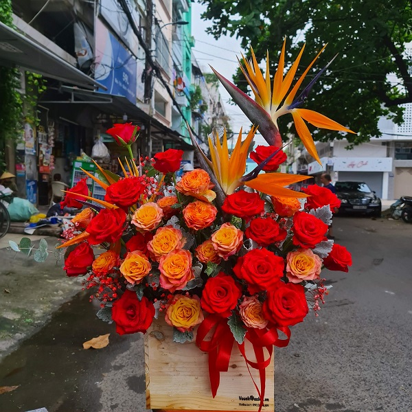 Lẵng hoa chúc mừng sinh nhật kết hợp bỏi những đóa hoa hồng đẹp nhất tạo nên một lẵng hoa độc đáo dành để gởi những lời chúc mừng đến người thân