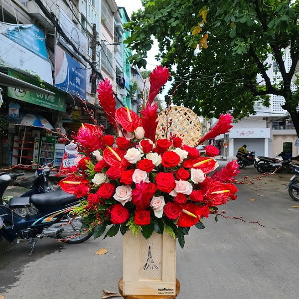 Lẵng hoa chúc mừng sinh nhật kết hợp bỏi những đóa hoa hồng đẹp nhất tạo nên một lẵng hoa độc đáo dành để gởi những lời chúc mừng đến người thân